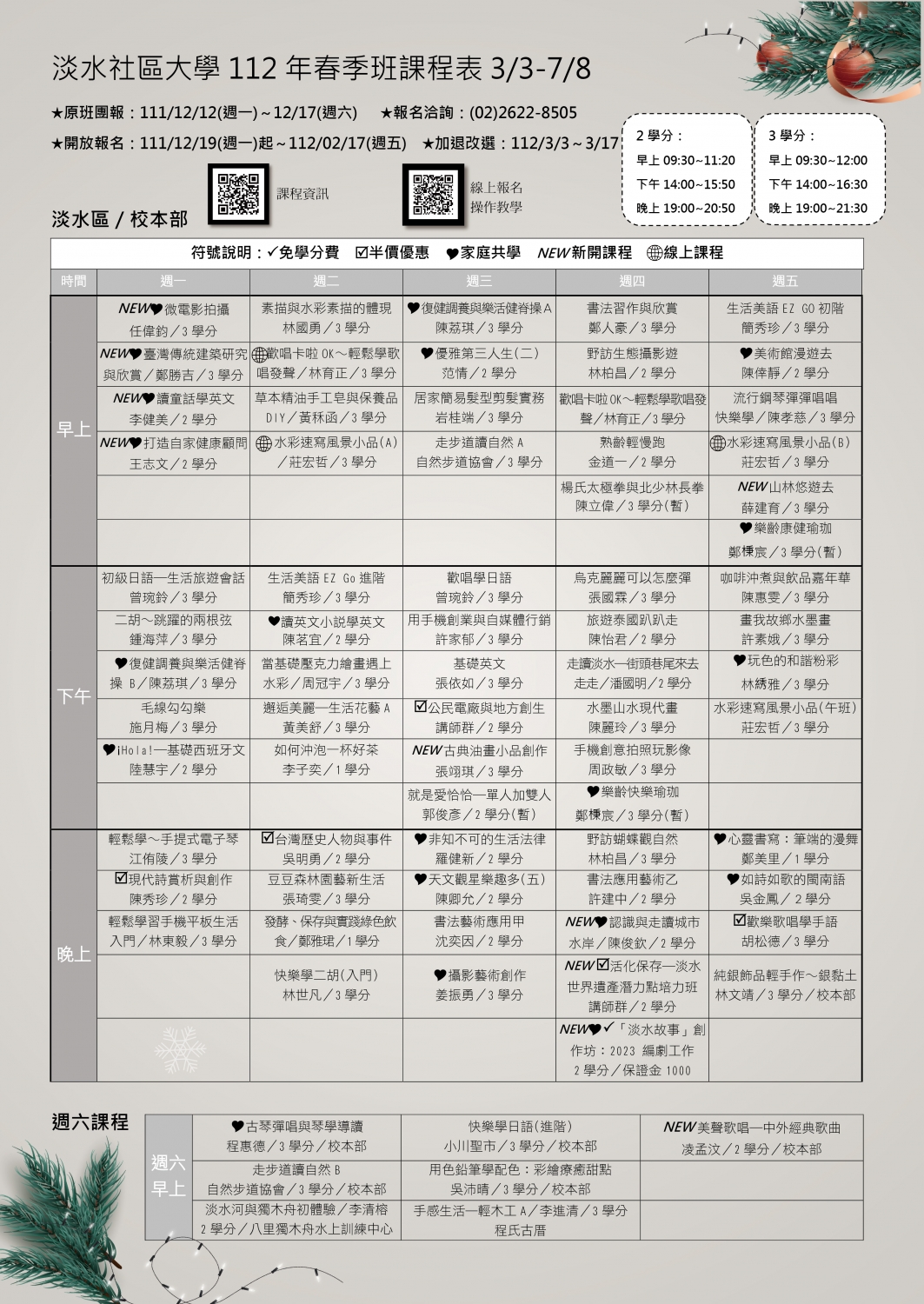 報名方式:現場:週一至週五14:00至20:00淡水社區大學辦公室