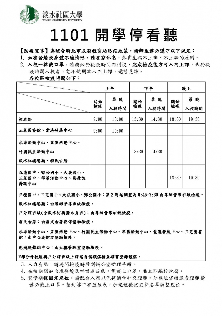 2021/3/5110年春季班開學停看聽!